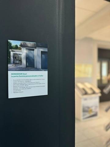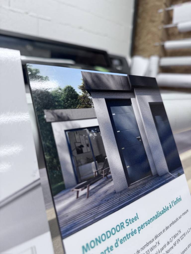 Les panneaux dibond présentent la gamme de produits du showroom de manière attrayante et efficace. Grâce à notre expertise et à notre savoir-faire, nous sommes en mesure de créer des impressions sur mesure qui captent l'attention des visiteurs et mettent en valeur les produits présentés.