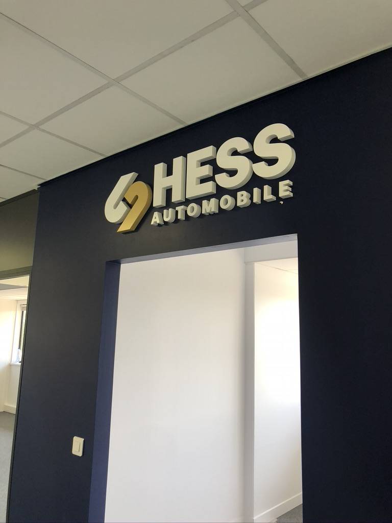 Le PVC est un matériau particulièrement adapté à une enseigne intérieure. Léger, résistant et polyvalent, il offre une grande liberté de formes et de finitions. Lors de cette installation à Bischheim, proche de Strasbourg, les éléments ont été découpés sur mesure afin de garantir un rendu précis et soigné. L’enseigne intérieure en PVC s’intègre harmonieusement dans l’environnement existant, tout en assurant une excellente lisibilité pour les visiteurs et les collaborateurs.