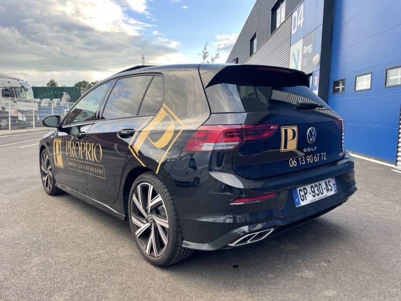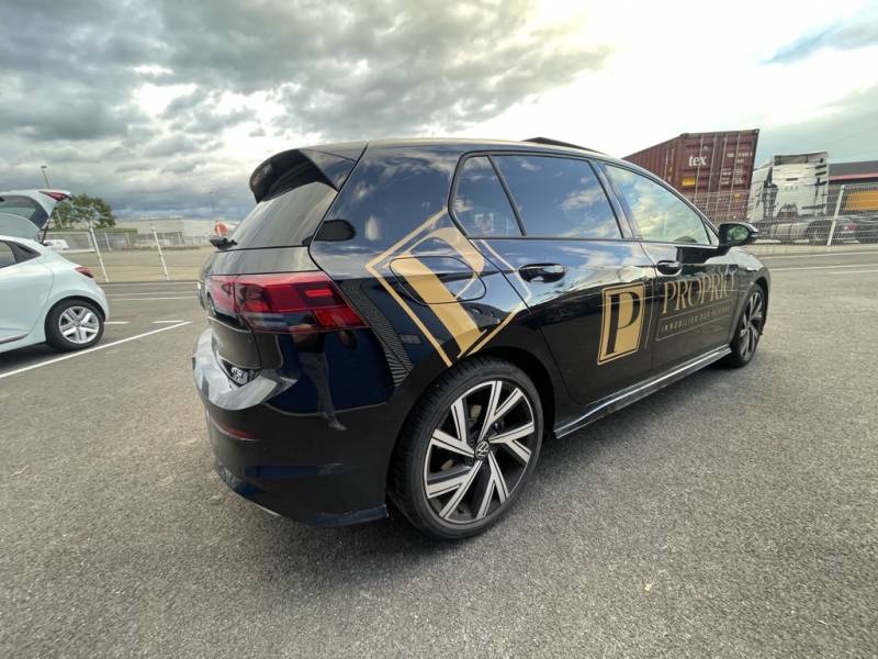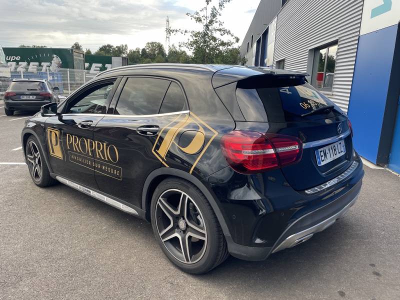 Les véhicules noirs, symboles d'élégance et de prestige, offrent une toile idéale pour exposer votre message commercial. Notre équipe a relevé ce défi en utilisant des adhésifs beige légèrement doré pour créer un contraste frappant.