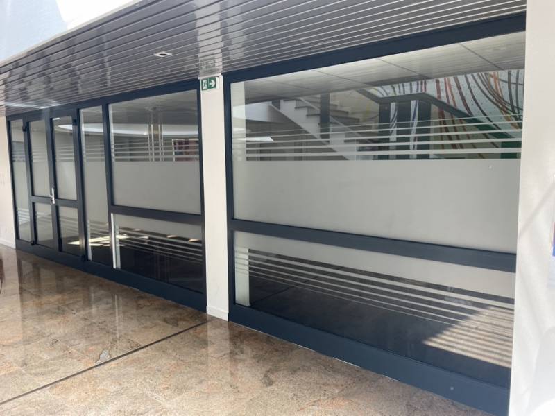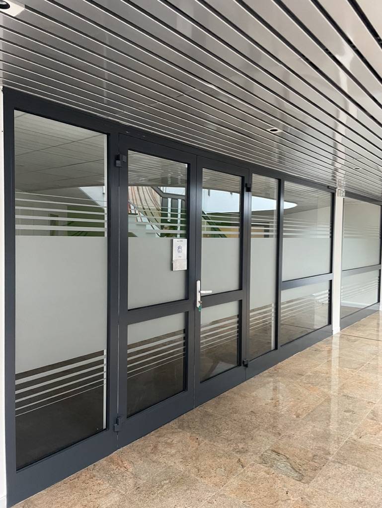 Nous avons été contacté pour apporter de l'intimité à ces bureaux sur Haguenau en Alsace. Nous avons donc habiller toutes les cloisons de ce long couloir ouvert. Le film de confidentialité est découpé sur mesure dans nos ateliers, nous pouvons donc intégrer des bandes, logos ou tout autre motif personnalisé.